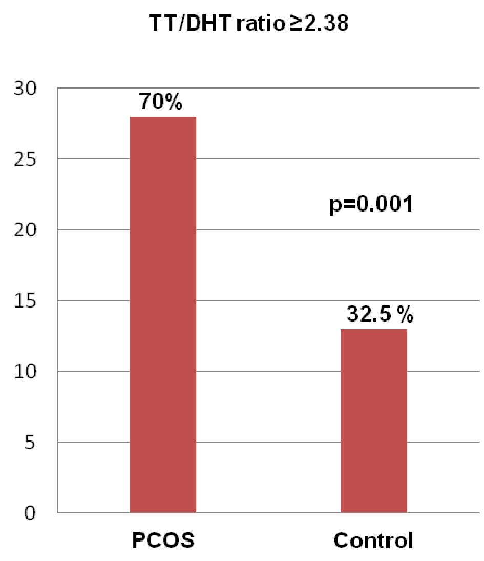 Conclusions: There is a close relation between the TT/DHT ratio and adverse metabolic outcome in PCOS. Therefore, TT/DHT ratio may be considered as a predictor of adverse metabolic findings in PCOS.